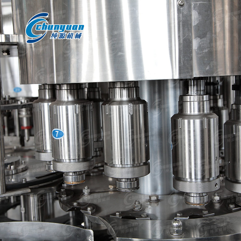 全自動飲用水灌裝機(jī)械采用卡瓶頸傳動技術(shù),實現(xiàn)全自動沖瓶、灌裝、旋蓋等工序,自動化程度高。