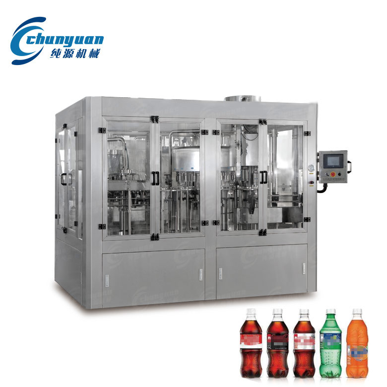 純源機械廠家生產的含氣飲料灌裝機械采用不銹鋼材料制成。含氣飲料設備具有結構合理、工藝先進、操作方便、適用范圍廣等特點,是中小型飲料廠家理想的生產流水線機組。